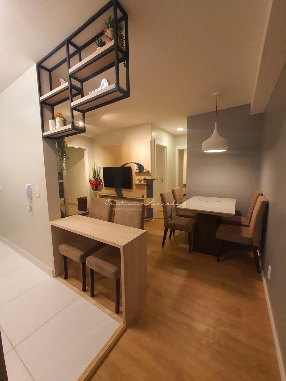 Sala para 2 ambientes, varanda já com envidraçamento. Cozinha americana equipada.