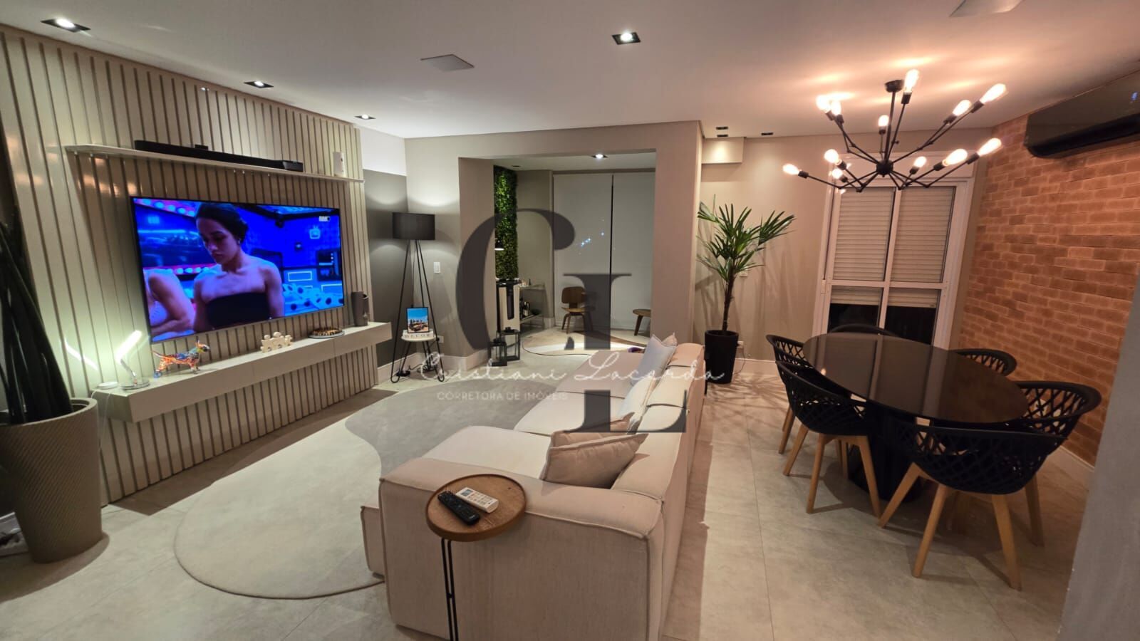 Sala ampliada e integrada à varanda (com ponto para churrasqueira).