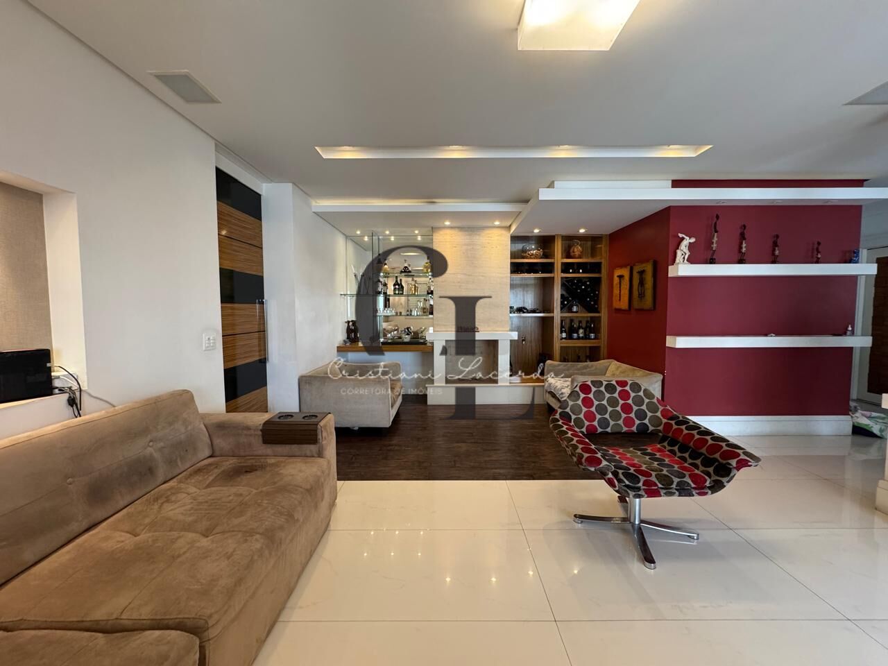 Sala para 3 ambientes, uma deles com lareira + lavabo.