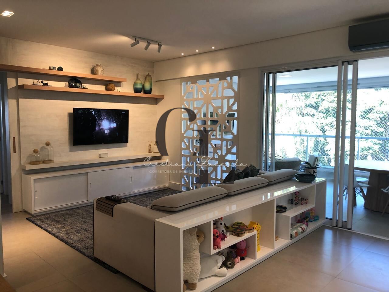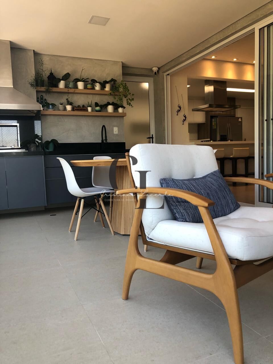 Sala estendida para 3 ambientes, lavabo, varanda espaçosa com churrasqueira a carvão, já com envidraçamento e também conectada à cozinha.