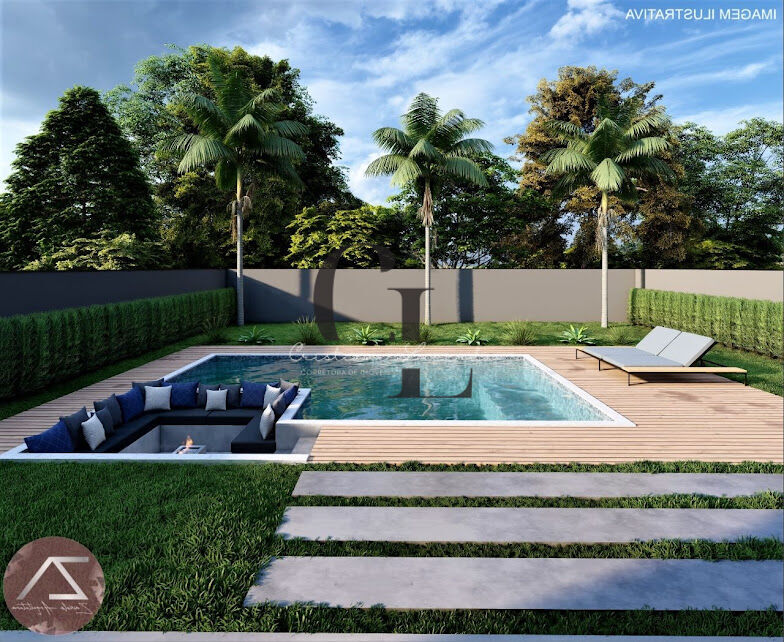 Piscina, tubulação de água quente, caixas e passagens para instalação de ar condicionado