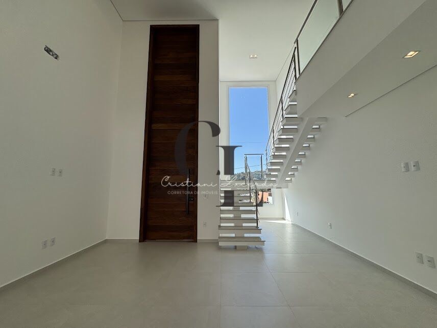 Pé direito duplo, acabamentos de alta qualidade em tons claros e muita luz natural.