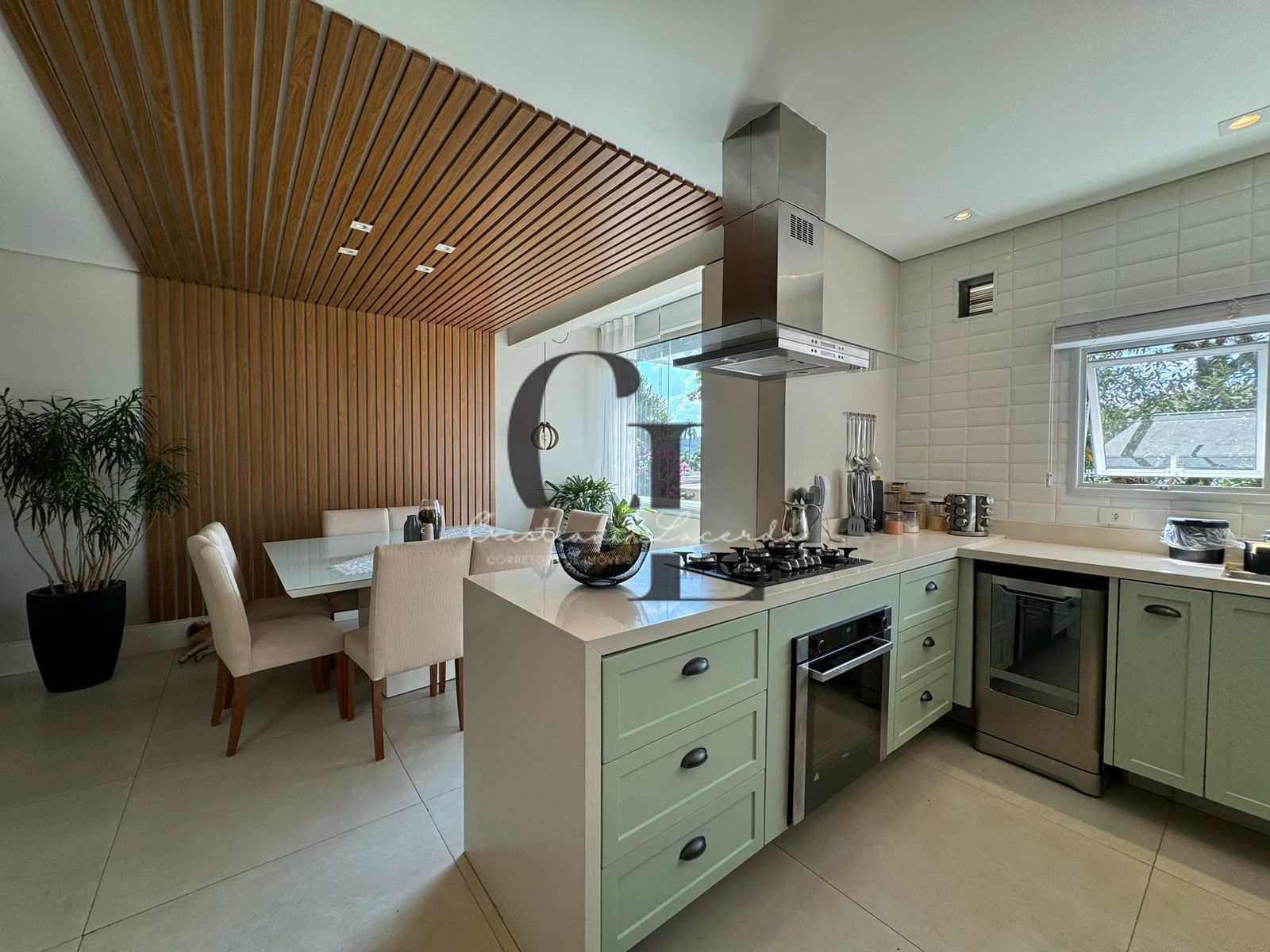 Acessando o pavimento superior, temos as 3 suítes, todas com ar condicionado e armários planejados. Na suíte máster um amplo closet, com muita ventilação natural. Aliás, ventilação e iluminação naturais são destaques nesse imóvel.