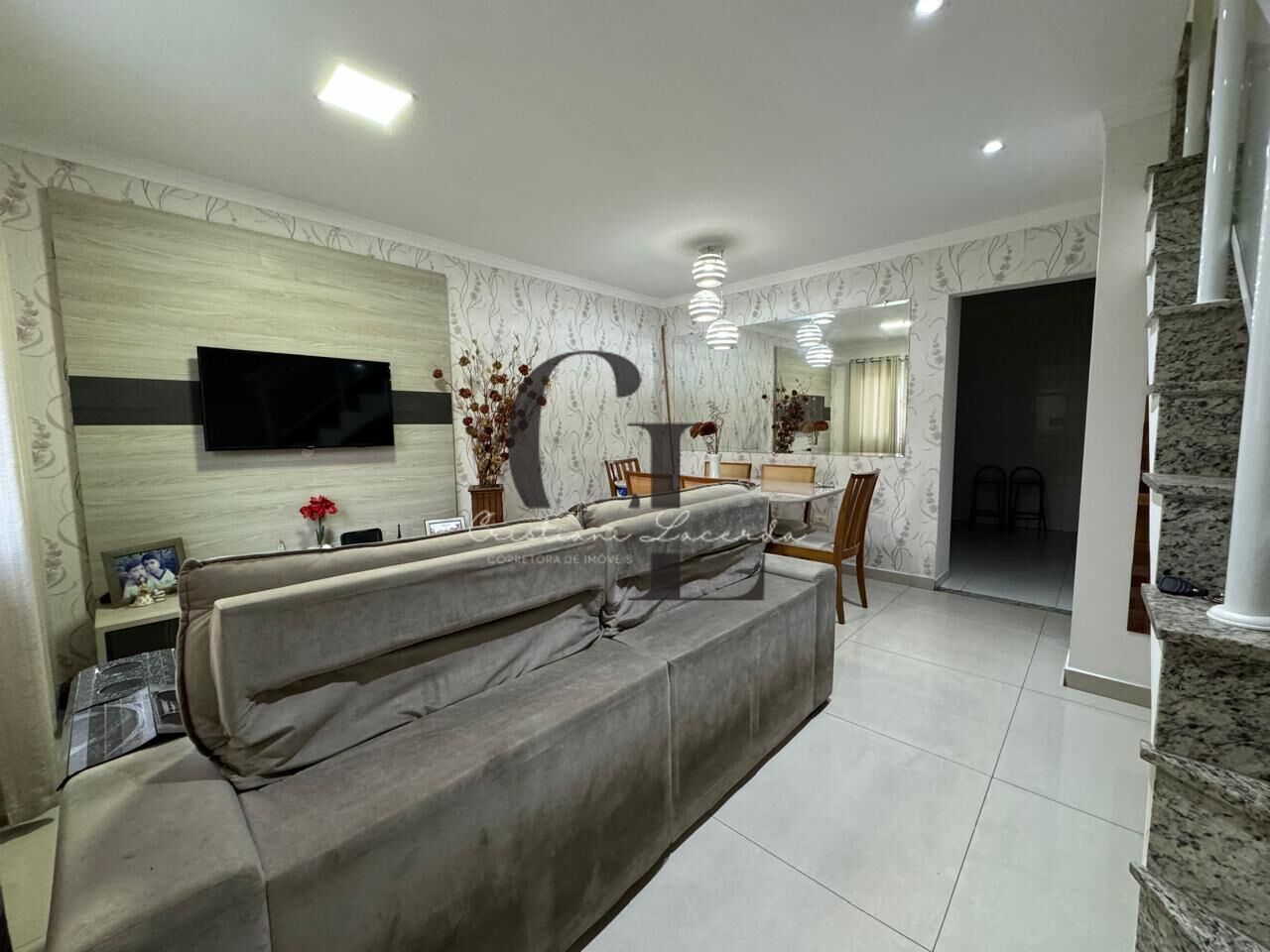 Sobrado à venda em condomínio fechado com 79 metros de área construída e área total de 149 metros.