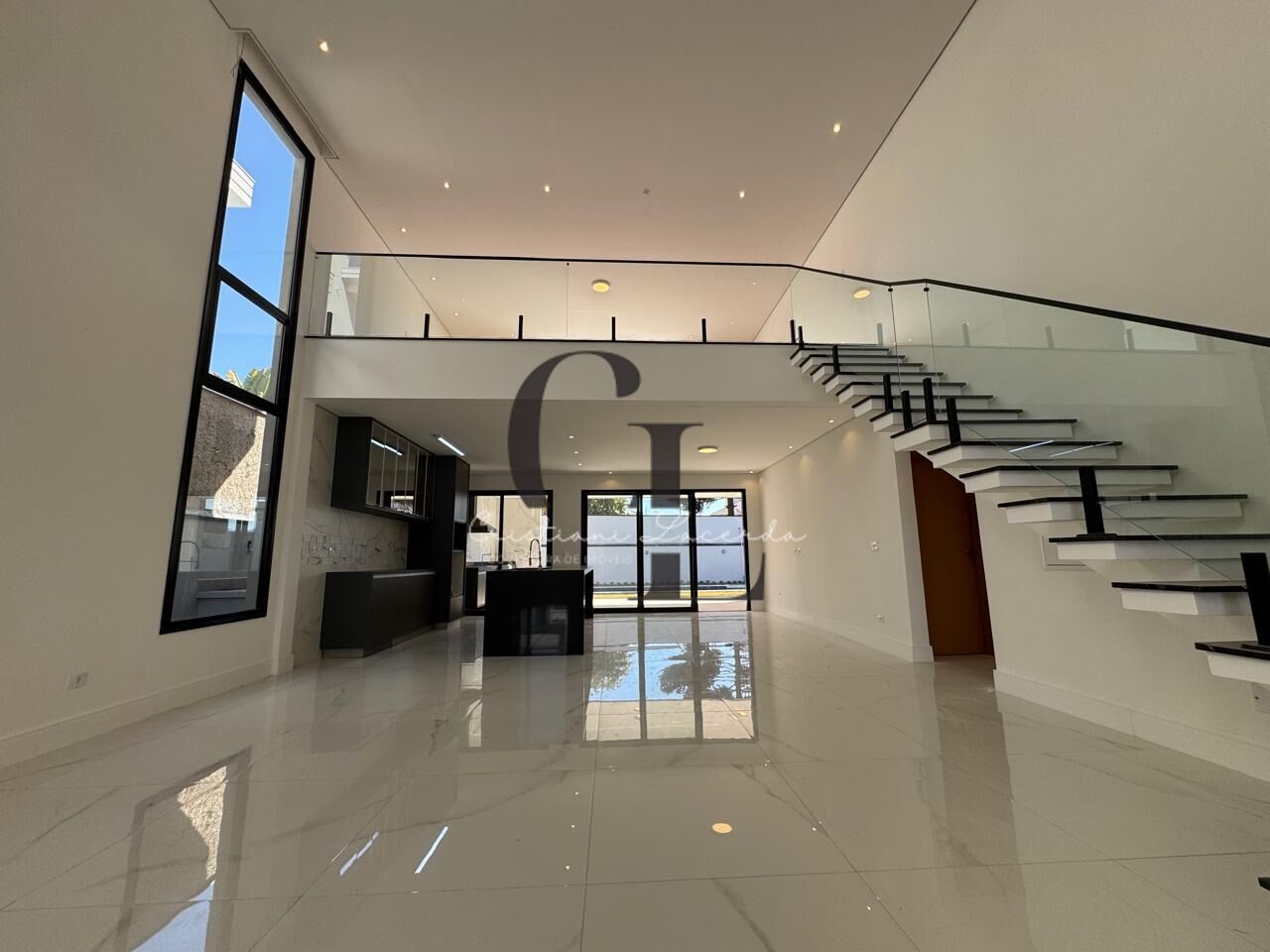 Clean, com pé direito duplo e ambientes integrados e muita luz natural.
